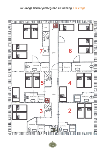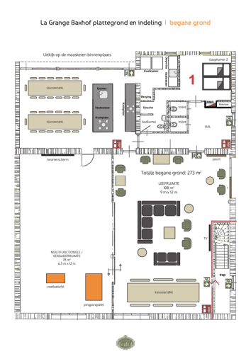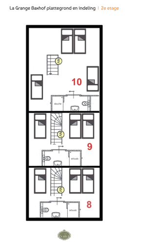De plattegrond kan u een visueel beeld te geven van de indeling van de ruimtes. Bovendien kunt u alvast aan de hand indeling van de kamers de groep verdelen. Zoals u kunt zien houden wij rekening met 1,5 meter afstand in onze vakantiewoning.
